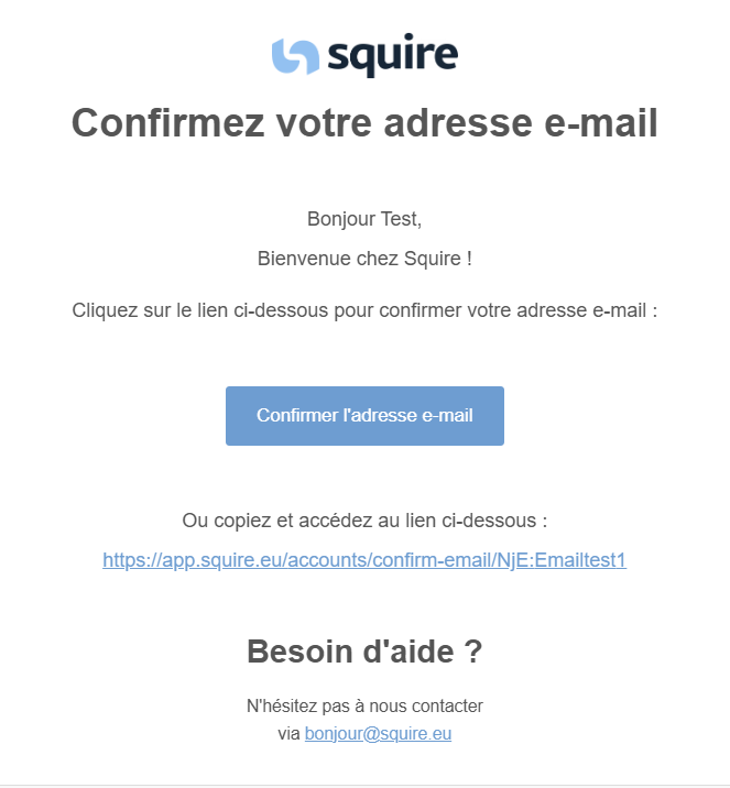 Allez dans votre boîte mail et cherchez un e-mail de Squire.