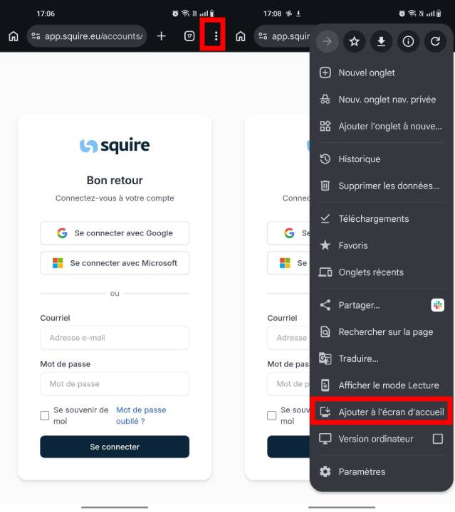 Pour un accès encore plus rapide, vous pouvez installer Squire comme application sur votre PC. Cela fonctionne via le navigateur de la manière suivante :